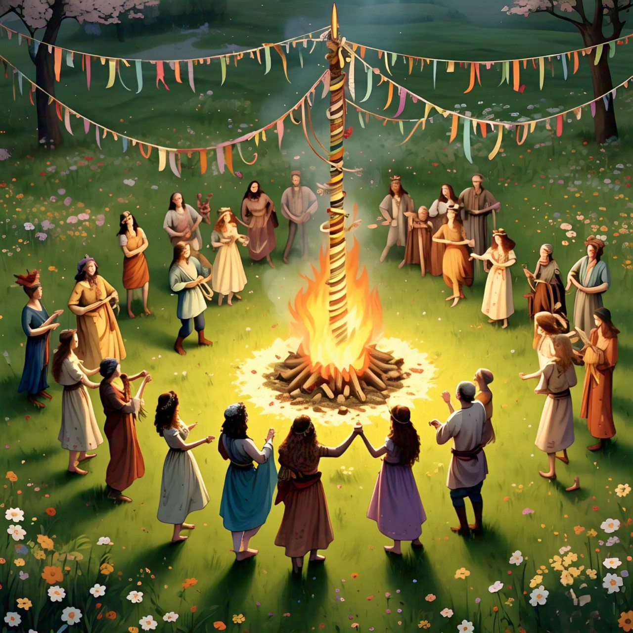 The May Day festival celebrating fertility and the height of spring. Modern pagans dance around maypoles, light bonfires, and celebrate the union of the God and Goddess.